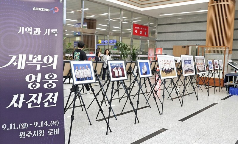 (원주=연합뉴스) 이재현 기자 = 원주혁신도시 공공기관인 한국보훈복지의료공단이 후원한 '제복의 영웅 사진전'이 원주시청에서 열린다.