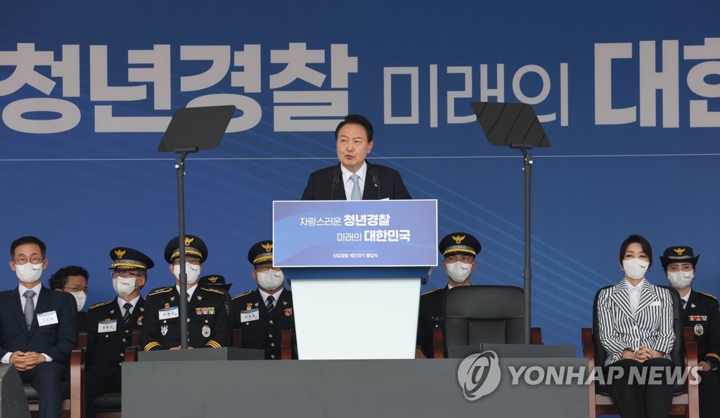 SEOUL, Aug. 19 (Yonhap) -- President Yoon Suk-yeol vowed Friday to improve working conditions for the police and guarantee their neutrality as he attended the graduation ceremony of a new batch of police officers.