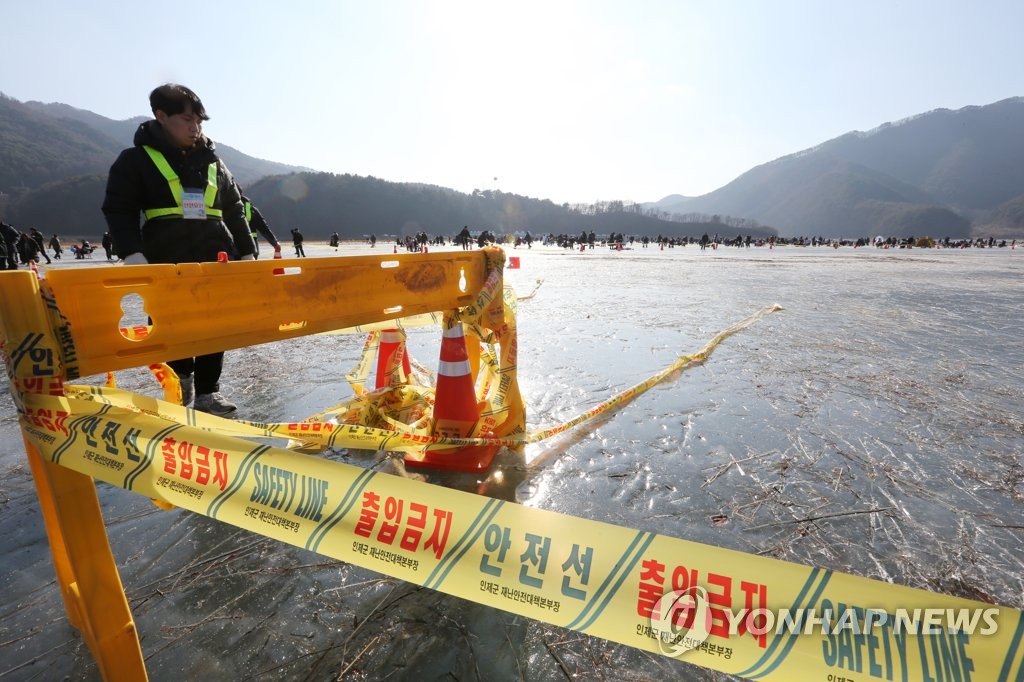 | ▲ 포근한 날씨에 빙어 얼음 낚시터 입장 제한 [연합뉴스 자료사진] |