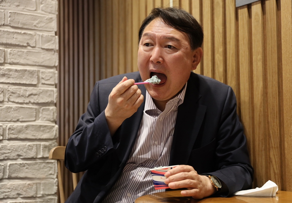 | ▲ 사진집 '윤석열의 길'에 담긴 윤석열 대통령 국민의힘 대선 후보 시절 '민트초코'맛 아이스크림을 먹는 윤석열 대통령. [엘컴퍼니 제공. 재판매 및 DB 금지] |
