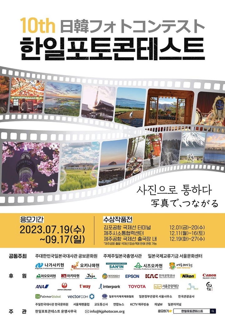 한국이나 일본 국적자를 대상으로 '내가 생각하는 한국 또는 일본의 매력적인 관광지', 숨은 명소, 추억의 한 장면, 음식, 문화, 예술 등과 관련한 사진을 모집한다. 시상식은 12월9일 열린다.