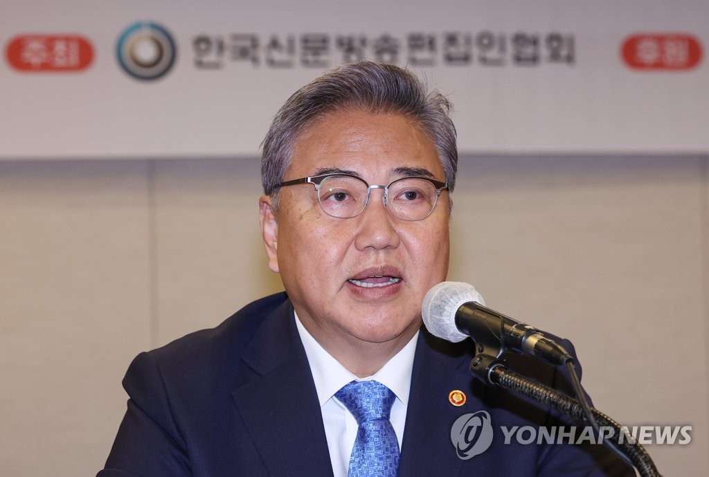 | ▲ Foreign Minister Park Jin speaks during a forum organized by the Korea News Editors' Association at the Press Center in Seoul on May 23, 2023. (Yonhap) |