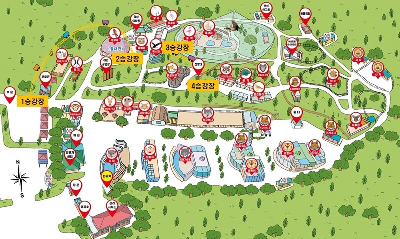 얼룩말사(1승강장)∼열대관(2승강장), 독수리사(3승강장)∼전망대(4승강장) 등 상행길만 2개 코스로 운행된다.