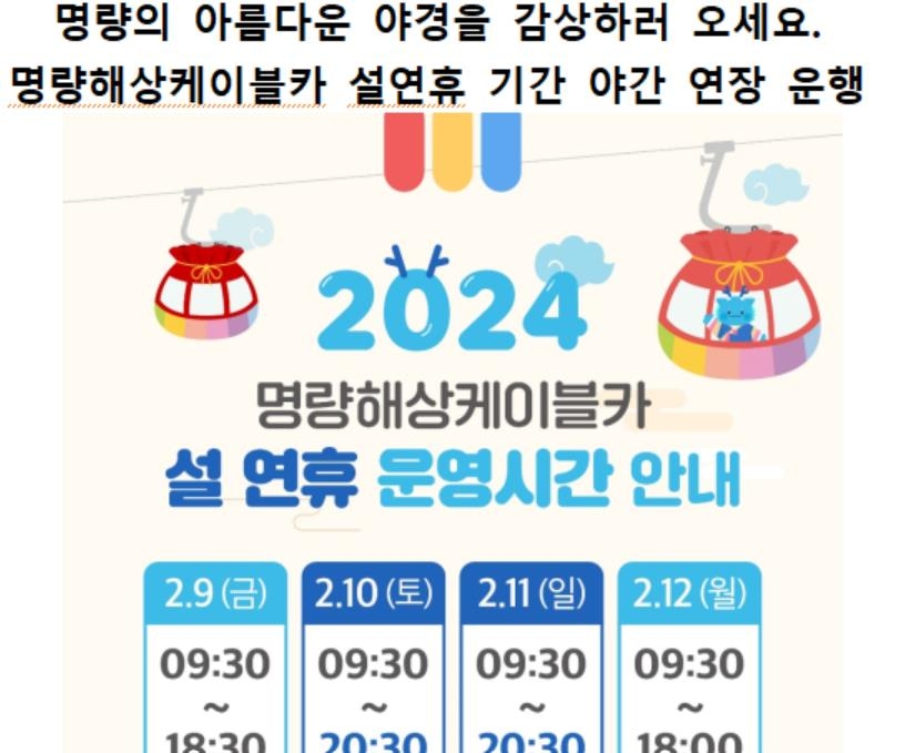 명량해상케이블카는 10∼11일 운행시간을 기존 오후 6시 30분에서 오후 8시 30분까지로 2시간 연장한다.