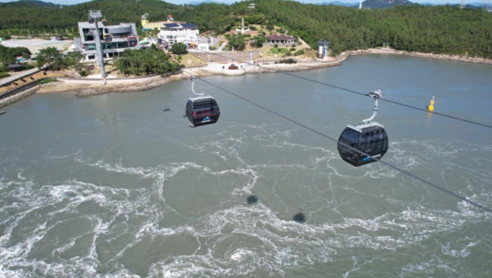 전남 진도군 군내면 녹진 관광지 진도타워와 해남 우수영 관광지를 연결하는 케이블카는 전체 1km 중 600m가 바다 위를 가로지른다.