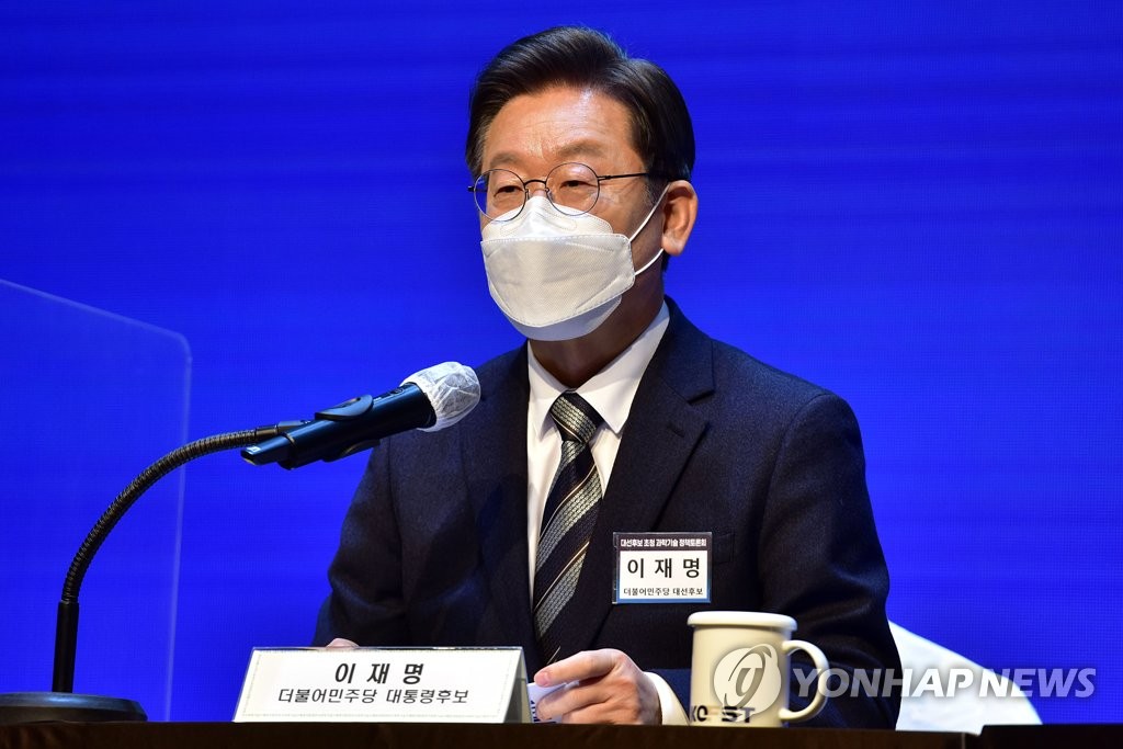 | ▲ 과학기술 정책토론회에서 기조연설하는 이재명 후보 (서울=연합뉴스) 더불어민주당 이재명 대선 후보가 19일 서울 강남구 한국과학기술회관에서 열린 ‘과학기술인이 묻고, 이재명이 답하다’- 한국과학기술단체총연합회 초청 과학기술 정책토론회에서 기조연설을 하고 있다. 2022.1.19 [국회사진기자단] toadboy@yna.co.kr |