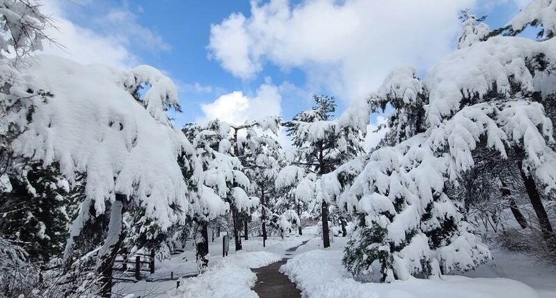 눈은 무릎까지 왔지만, 관찰로를 비롯한 수목원 대부분 지역에서는 눈을 치워 관람에 지장이 없는 상태다.