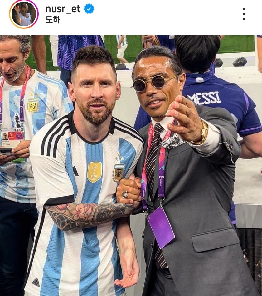 카타르 현지에서 유명 레스토랑을 운영하는 '솔트 배'(Salt Bae)라는 애칭의 이 셰프는 시상식이 끝난 뒤 현장을 자유롭게 누비며 아르헨티나 선수들과 사진을 함께 찍었다.