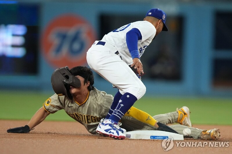 김하성은 12일(한국시간) 미국 캘리포니아주 로스앤젤레스 다저 스타디움에서 열린 2023 미국프로야구 메이저리그(MLB) 로스앤젤레스 다저스와 방문 경기에 1번 타자 2루수로 선발 출전해 4타수 1안타 1타점 1득점을 수확했다.