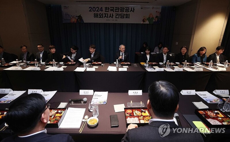 | ▲ 2024 한국관광공사 해외지사 간담회 (서울=연합뉴스) 강민지 기자 = 30일 오후 서울 용산구 드래곤시티에서 '2024 한국관광공사 해외지사 간담회'가 열리고 있다. 2024.1.30 mjkang@yna.co.kr |