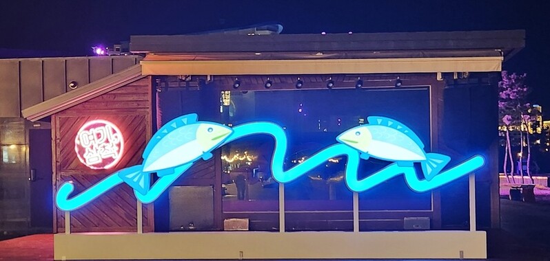 보름달을 형상화한 빛 조형물은 밤에 해변을 찾는 관광객들에게 큰 인기를 끌고 있다.