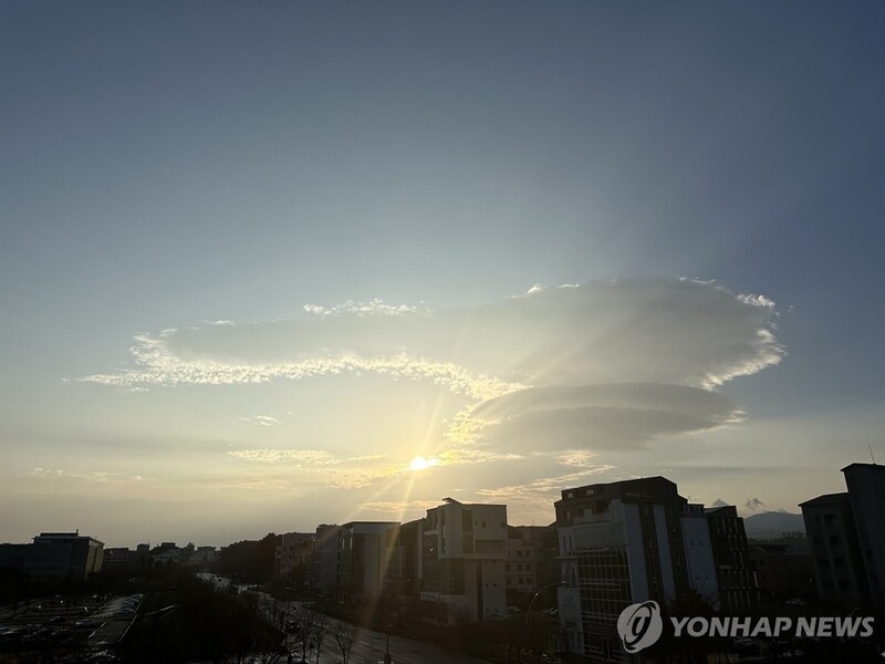 (제주=연합뉴스) 지난 주말부터 제주도의 기온이 20도를 웃돌면서 여름철에나 주로 볼 수 있는 렌즈구름(렌즈운)이 19일 아침 곳곳에서 관측됐다.