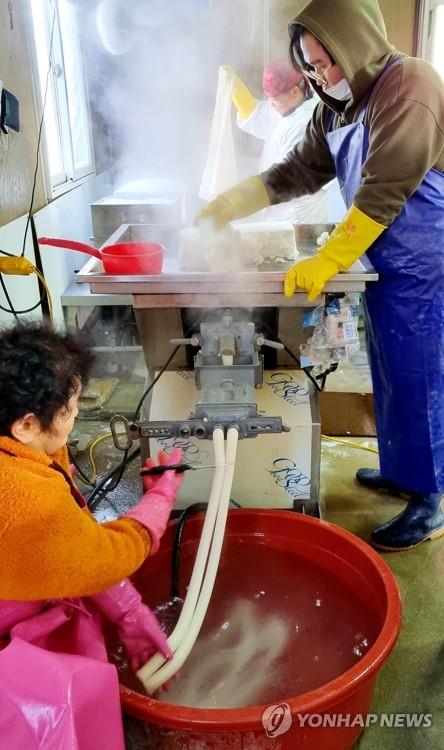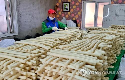 (세종=연합뉴스) 설 연휴를 10여일 앞둔 18일 세종시 연동면 응암리 농업법인 매바위에서 떡국떡 만들기가 한창이다.