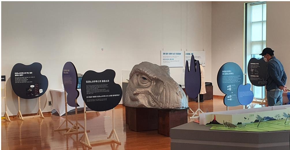 전시실에는 중생대 숲속과 공룡계의 슈퍼스타인 티라노사우루스 체험을 비롯해 실물 공룡알과 공룡분 화석을 확대경으로 관찰하고, 초식공룡의 이빨 등을 직접 만져볼 기회도 있다.