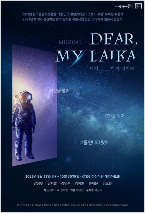 ▲ 우주 소재로 한 창작뮤지컬 '디어마이라이카' = 우주를 소재로 한 창작뮤지컬 '디어 마이 라이카'가 9월 23일부터 10월 30일까지 서울 강남구 KT&G 상상마당 대치아트홀에서 공연한다.