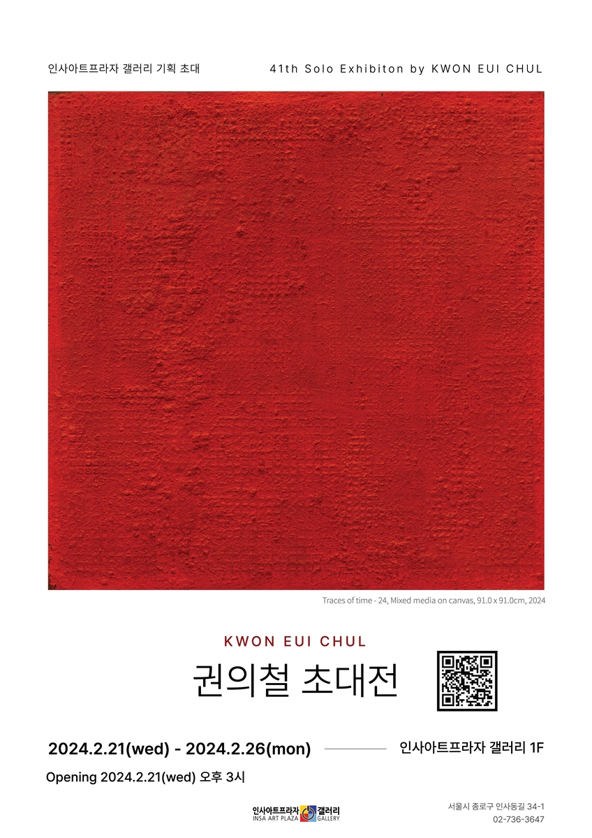 ▲ 한국적 추상회화 권의철 개인전 = 한국화가 권의철(79) 작가의 개인전이 21∼26일 서울 인사동 인사아트프라자 갤러리에서 열린다.