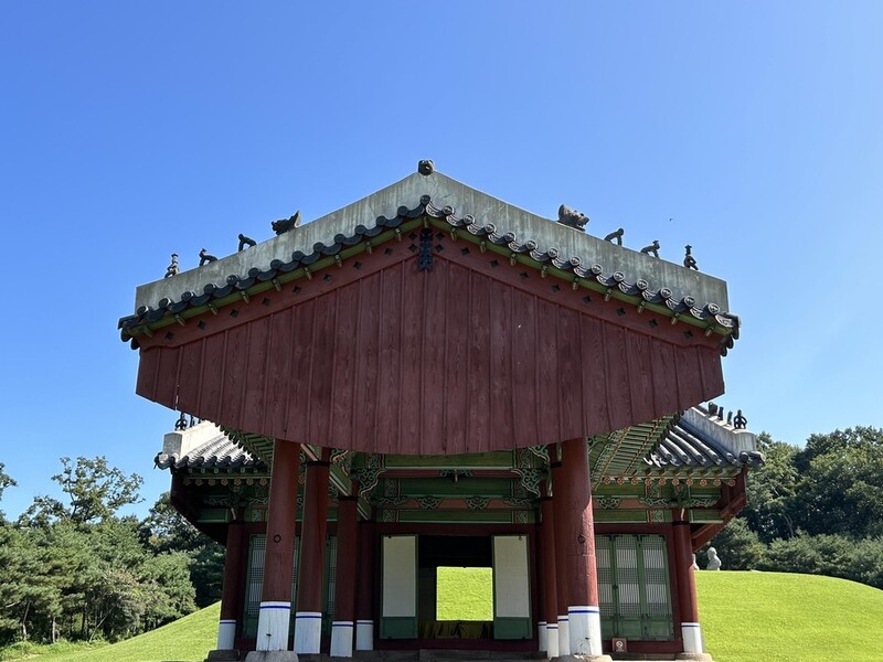 | ▲ 효릉의 정자각 (고양=연합뉴스) 김예나 기자 = 8일 일반 관람객에게 공개된 고양 서삼릉 효릉의 정자각 모습. 잡상은 기와지붕의 추녀마루 위에 놓는 장식기와로, 효릉에서는 가운데 부분에 독특한 기와를 볼 수 있다. 2023.9.8 yes@yna.co.kr |
