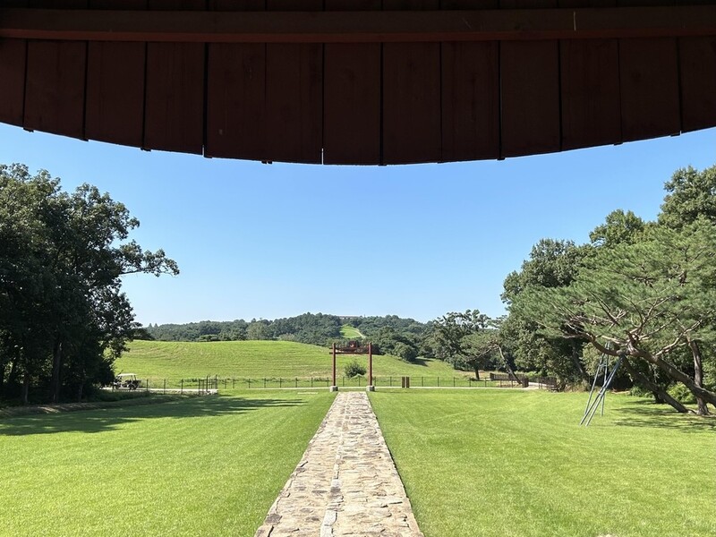 | ▲ 효릉 정자각에서 바라본 모습 (고양=연합뉴스) 김예나 기자 = 8일 일반 관람객에게 공개된 고양 서삼릉 효릉에서 정자각을 등지고 바라본 모습. 원래라면 왕릉의 안산(案山)이 있어야 하지만, 골프장 건물이 들어서있다. 2023.9.8 yes@yna.co.kr |