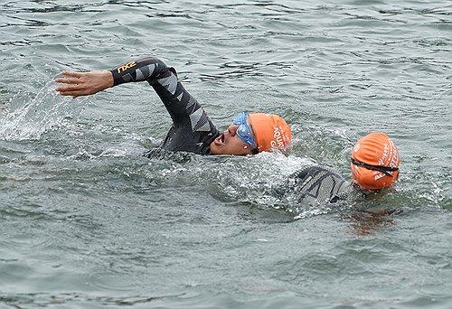 The 62-year-old mayor swam 750 meters and then completed the running part along the river.