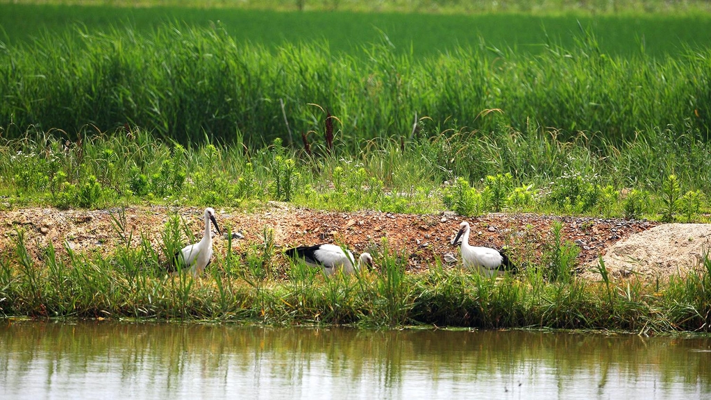 ▲ 먹이사냥 나선 황새 가족 [서산시 제공. 재판매 및 DB 금지]