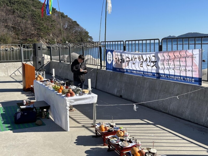 김삼룡 수산마을 어촌계장은 "어린 시절에는 별신굿 할 때면 집마다 떡과 생선, 나물 등을 상에 차려 준비했는데 이제는 마을 차원에서 제사상 하나와 작은 상 6개만 차린다"고 전했다.