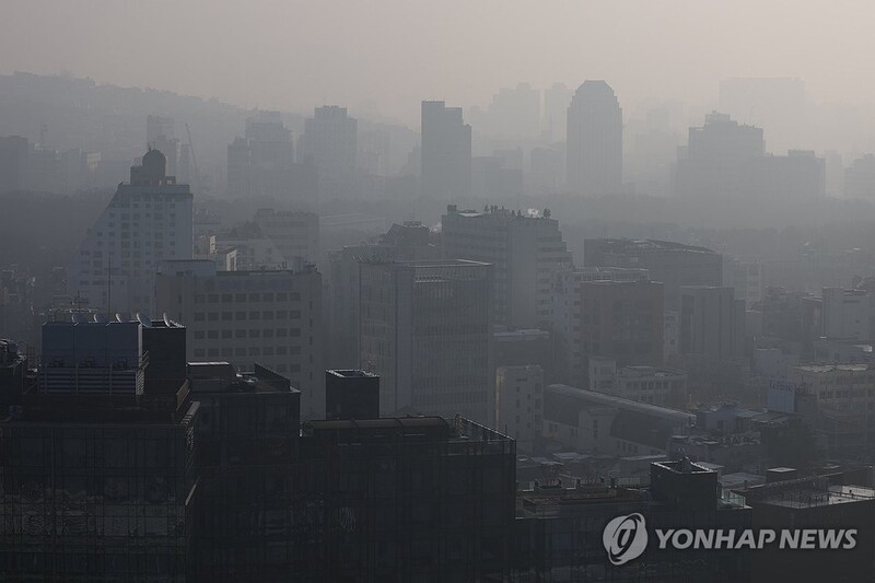 | ▲ 초미세먼지로 뒤덮인 서울 (서울=연합뉴스) 김성민 기자 = 서울에 초미세먼지 주의보가 발령된 12일 오전 서울 시내 한 건물에서 바라본 도심이 뿌옇다. 2024.2.12 ksm7976@yna.co.kr |