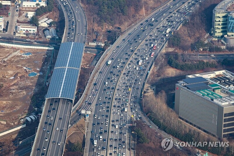 | ▲ 설 연휴 귀성길 정체 시작 (성남=연합뉴스) 서대연 기자 = 설 연휴를 하루 앞둔 8일 오후 경찰청 헬기에서 바라본 경기도 성남시 판교JC 인근 경부고속도로가 귀성차량 등으로 정체되고 있다. 2024.2.8 [항공촬영협조 = 서울경찰청 항공대 문흥주 경감, 심동국 경위] dwise@yna.co.kr |