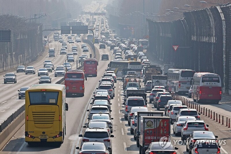 | ▲ 설 연휴 D-1, 귀성 전쟁 시작 (서울=연합뉴스) 임화영 기자 = 설 연휴를 하루 앞둔 8일 서울 서초구 잠원IC 부근 경부고속도로 하행선(오른쪽)이 정제를 빚고 있다. 2024.2.8 hwayoung7@yna.co.kr |