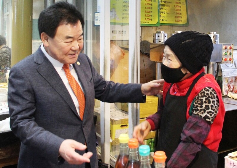 | ▲ 전통시장 상인 목소리 듣는 고재창 태백시의회 의장 [태백시의회 제공.재판매 및 DB 금지] |