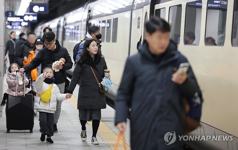 | ▲ '즐거운 설 명절 보내세요' (서울=연합뉴스) 이지은 기자 = 설 연휴를 하루 앞둔 8일 오전 서울역에서 쌍둥이가 부모와 함께 귀성 열차에 오른 뒤 손을 흔들고 있다. 2024.2.8 jieunlee@yna.co.kr |
