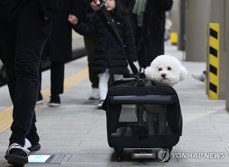 | ▲ '반려견과 함께 고향으로' (서울=연합뉴스) 김주형 기자 = 설 연휴를 하루 앞둔 8일 오전 서울 강남구 수서역에서 SRT를 타고 귀성하는 시민들이 열차에 탑승하고 있다. 2024.2.8 kjhpress@yna.co.kr |