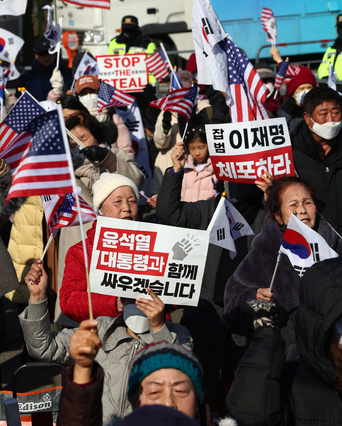 Supporters of impeached President Yoon Suk Yeol rally in front of the Seoul Detention Center in Uiwang, about 25 kilometers south of Seoul, on Jan. 17, 2025, two days after Yoon was taken there following his detainment in connection with his short-lived imposition of martial law. (Yonhap)