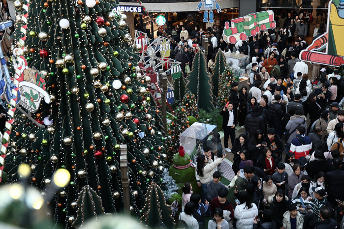 Starfield Library at COEX Crowds fill the Christmas-decorated Starfield Library at COEX in southern Seoul on Dec. 25, 2025. (Yonhap) (END)