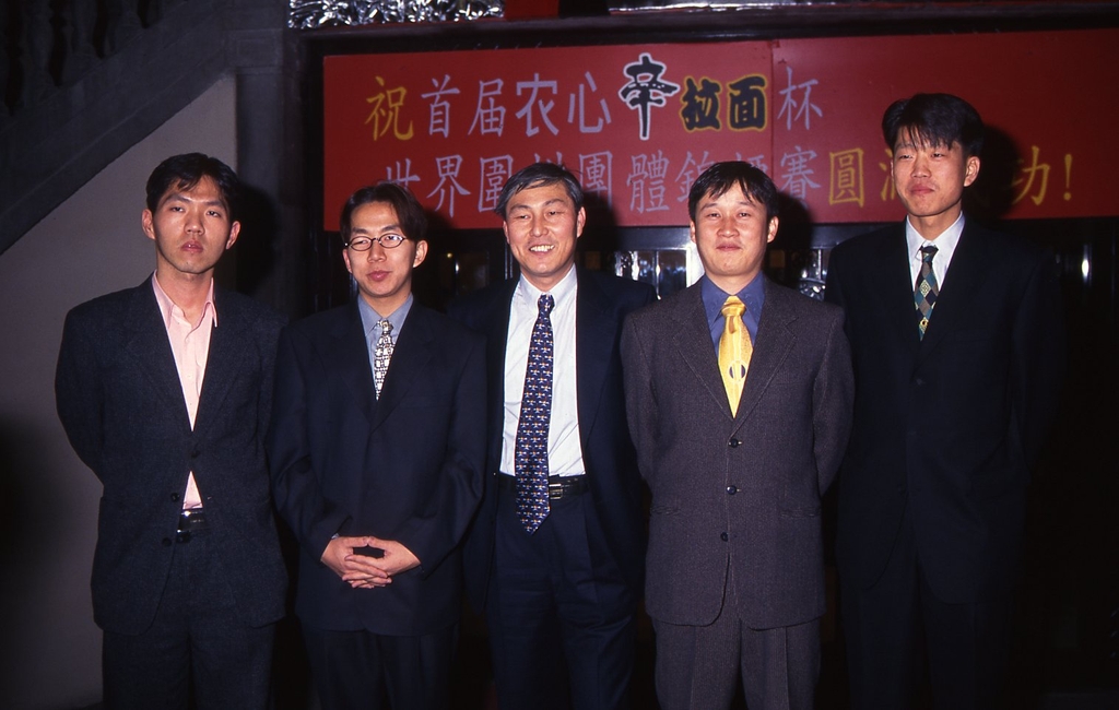 | ▲ 1기 농심배 한국 선수단. 왼쪽부터 이창호, 목진석, 조훈현, 유창혁, 김영삼 [한국기원 제공. 재판매 및 DB 금지] |