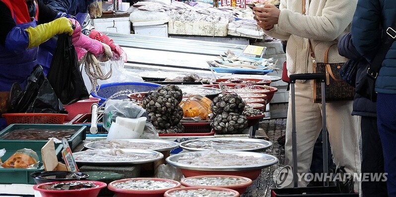 (창원=연합뉴스) 김동민 기자 = 민족 최대 명절인 설을 사흘 앞둔 7일 오후 경남 창원시 마산합포구 마산어시장을 찾은 시민들이 제수품 등을 사기 위해 분주히 발걸음을 옮기고 있다. 한 상인은 명절 기간에는 평소보다 소비자가 30%가량 많다고 전했다. 2024.2.7