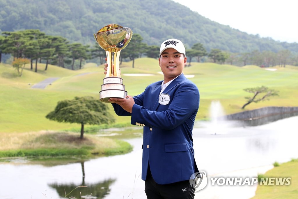 | ▲ 트로피 들고 기념 촬영하는 신상훈 (서울=연합뉴스) 신상훈이 12일 경남 양산 에이원 컨트리클럽에서 열린 한국프로골프(KPGA) 선수권대회 파이널라운드에서 우승한 뒤 트로피를 들고 기념 촬영하고 있다. 2022.6.12 [KPGA 제공. 재판매 및 DB 금지] photo@yna.co.kr |