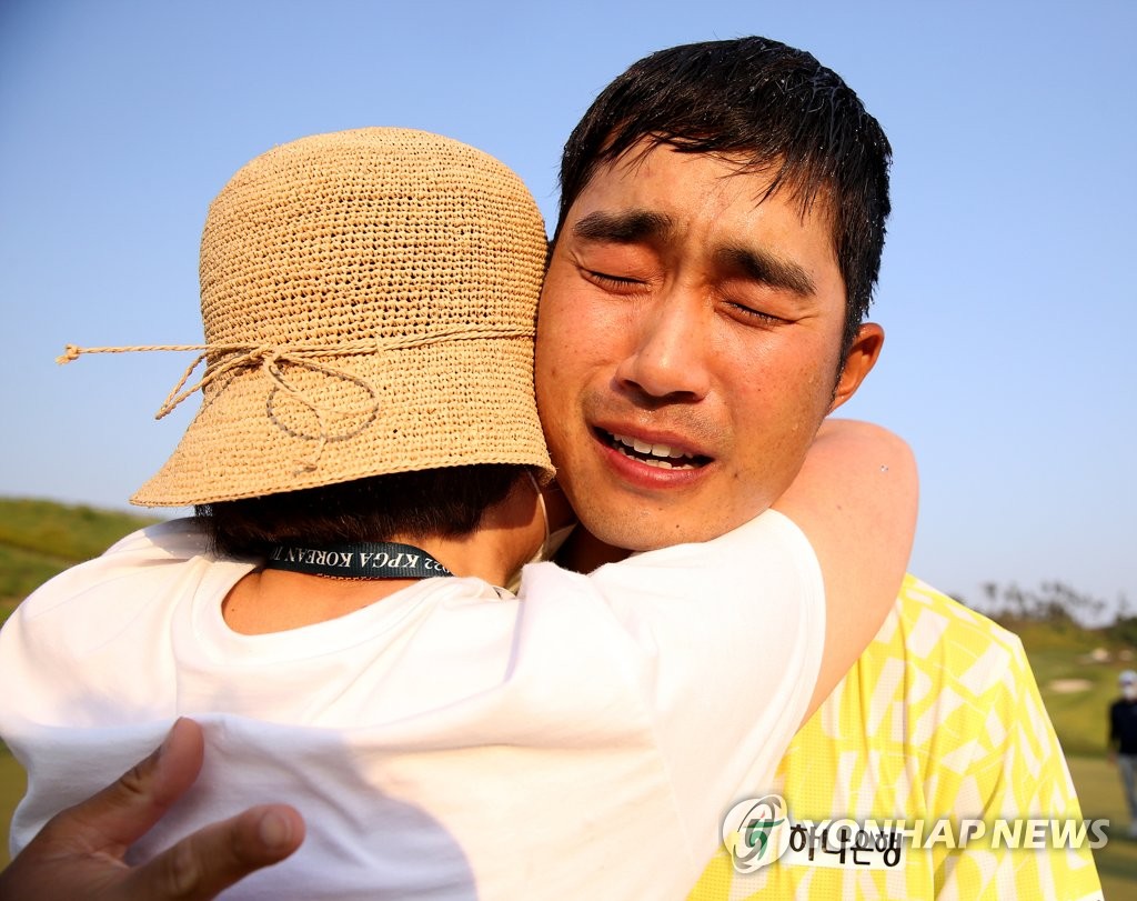 | ▲ 박은신, 우승 후 어머니와 포옹 (서울=연합뉴스) 박은신이 한국프로골프(KPGA) 코리안투어 유일의 매치플레이 대회에서 데뷔 13년 만에 첫 우승의 꿈을 이뤘다. 박은신은 22일 경남 거제 드비치 골프클럽에서 열린 KPGA 코리안투어 제12회 데상트코리아 먼싱웨어 매치플레이 결승전에서 연장 접전 끝에 김민준을 꺾고 '매치킹'에 올랐다. 2022.5.22 [KPGA 제공. 재판매 및 DB금지] photo@yna.co.kr |