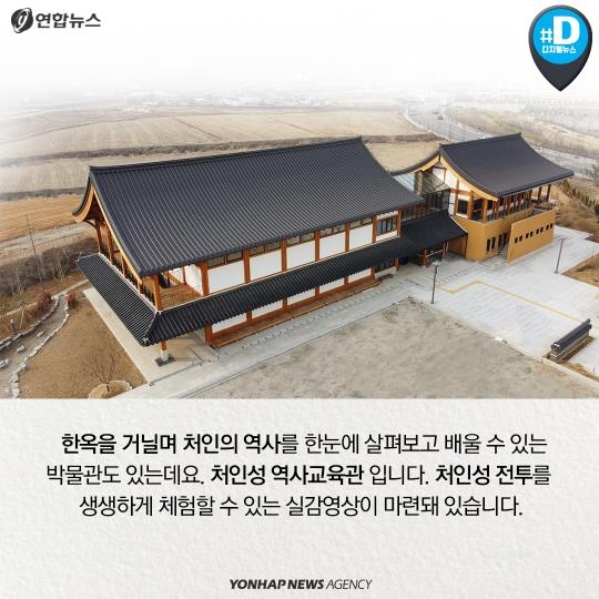 한옥을 거닐며 처인의 역사를 한눈에 살펴보고 배울 수 있는 박물관도 있는데요. 처인성 역사교육관입니다. 처인성 전투를 생생하게 체험할 수 있는 실감 영상이 마련돼 있습니다.
