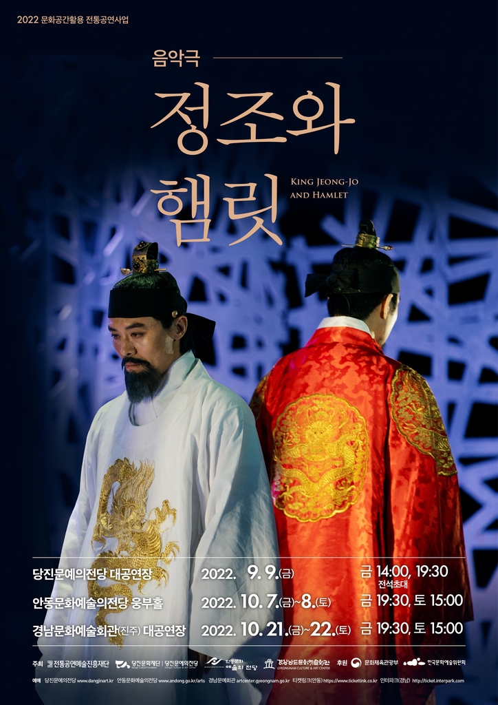 ▲ 음악극 '정조와 햄릿' 당진·안동·진주 공연 = 전통공연예술진흥재단이 음악극 '정조와 햄릿'을 오는 9일 당진문예의전당과 10월 7~8일 안동문화예술의전당, 10월 21~22일 진주 경남문화예술회관에서 무대에 올린다.