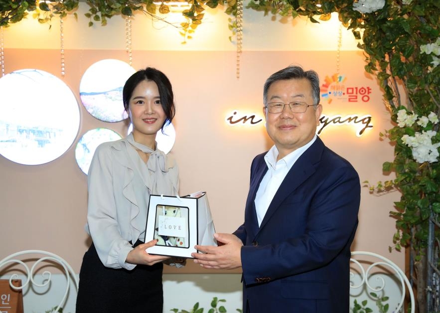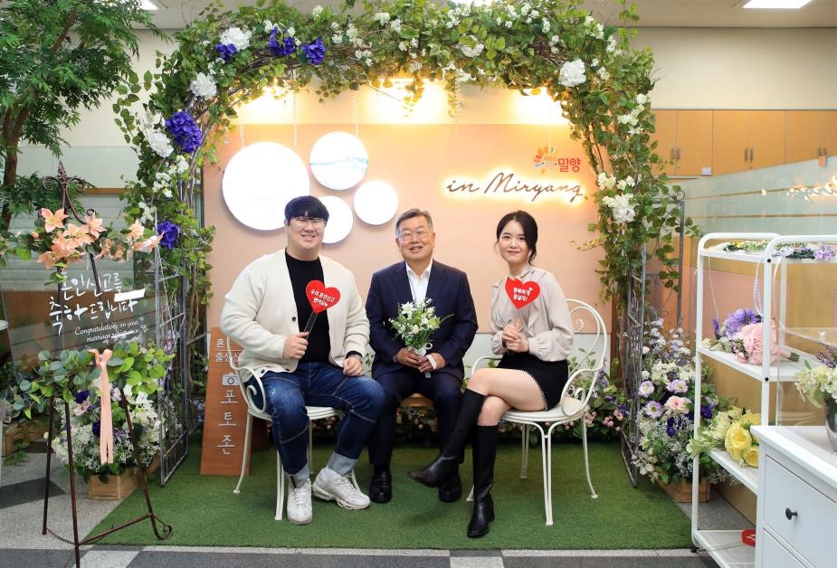밀양시청 '혼인신고 포토존' 새단장…시장과 기념사진·선물도