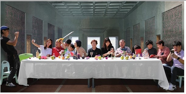 40년 넘게 함께 한 부부의 초상(이춘희), '마지막 만찬'을 차용한 최씨 집안의 가족 사진(최인숙), 소셜미디어(SNS) 세대의 여행 문화를 보여주는 포토존으로 구성된 풍경(이경희), 인공지능(AI) 빅데이터를 활용해 정물화 형식으로 보여주는 소비 트렌드(변현진) 등의 작품을 볼 수 있다.