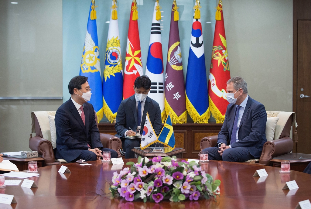 The meeting between Vice Defense Minister Shin Beom-chul and his Swedish counterpart, Jan-Olof Lind, came amid the two countries' shared concerns over North Korea's continued missile provocations and Russia's war in Ukraine.