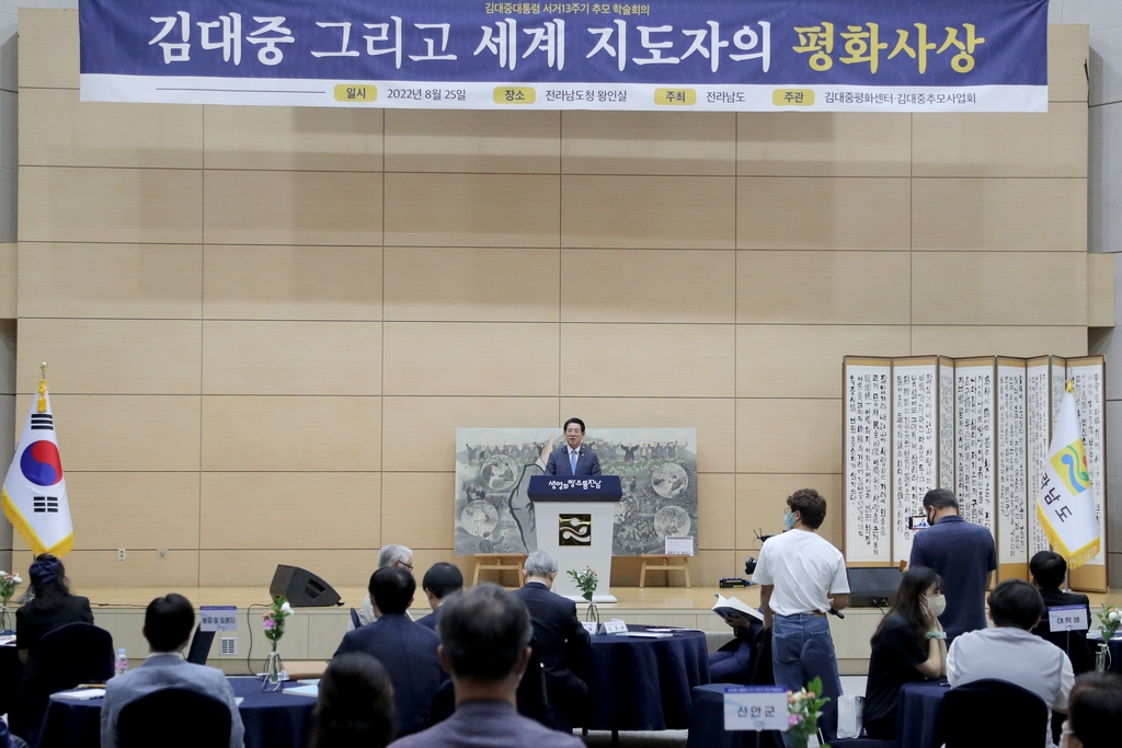 (무안=연합뉴스) 여운창 기자 = '김대중 대통령 서거 13주기 추모 학술회의'가 25일 전남도청 왕인실에서 김대중평화센터 주관으로 열렸다.