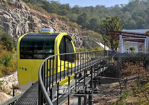 포천아트밸리 입구에서 정상까지 420m 구간에는 모노레일이 설치돼 운행하고 있다.