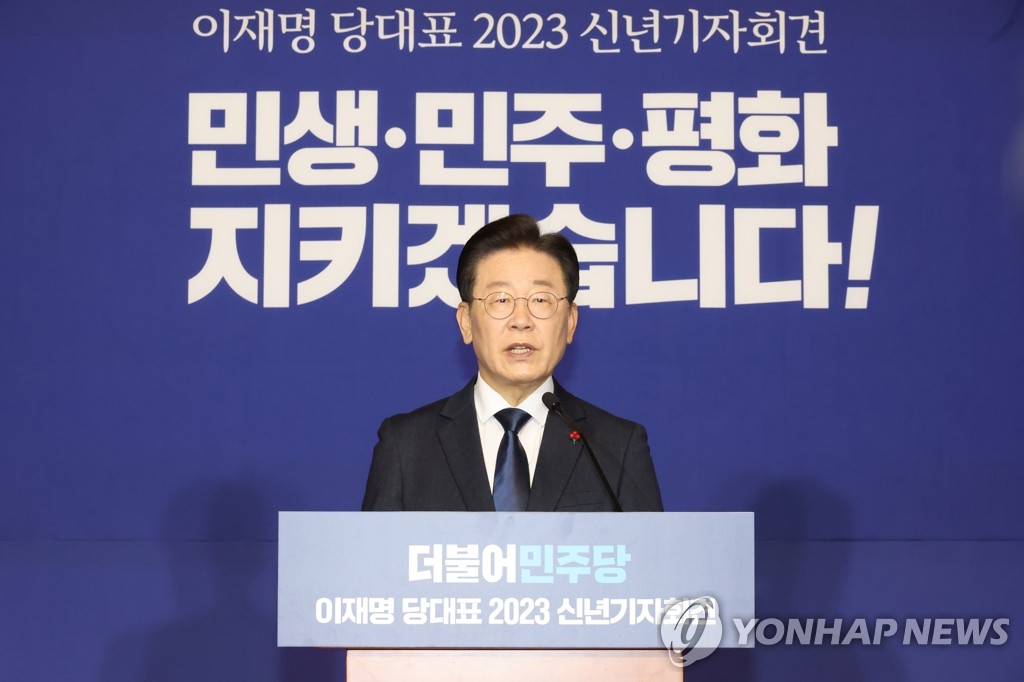 | ▲ Main opposition Democratic Party Chairman Lee Jae-myung speaks at a press conference for the new year at the National Assembly in Seoul on Jan. 12, 2023. (Yonhap) |