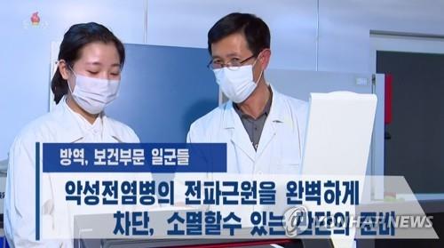 The North's official Korean Central Television said the country's entire society should continue to maintain the antivirus campaign by blocking all virus transmission routes, including border and coastal areas, until the world's public health crisis ends.
