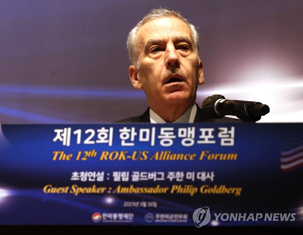 | ▲ U.S. Ambassador to South Korea Philip Goldberg speaks during a forum, hosted by the Korea-U.S. Alliance Foundation, in Seoul on March 30, 2023. (Yonhap) |