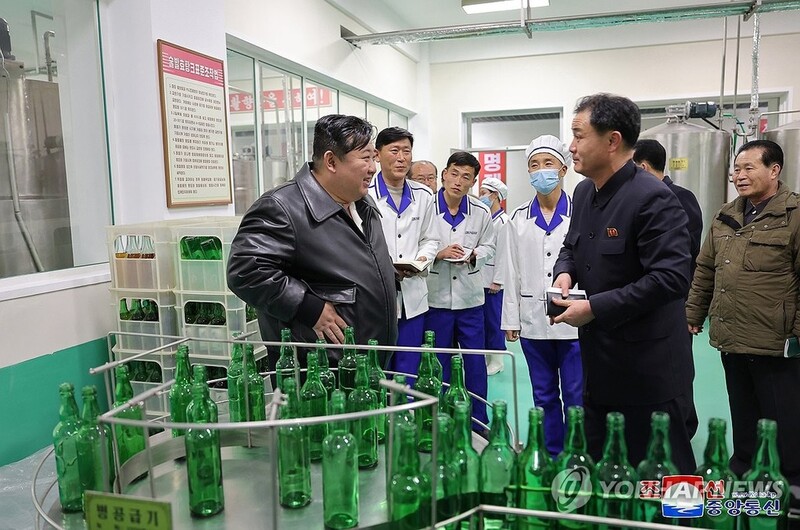| ▲ North Korean leader Kim Jong-un (L) visits a factory in Kimwha County in the North's Kangwon Province on Feb. 7, 2024, in this photo released by the Korean Central News Agency the following day. (For Use Only in the Republic of Korea. No Redistribution) (Yonhap) |