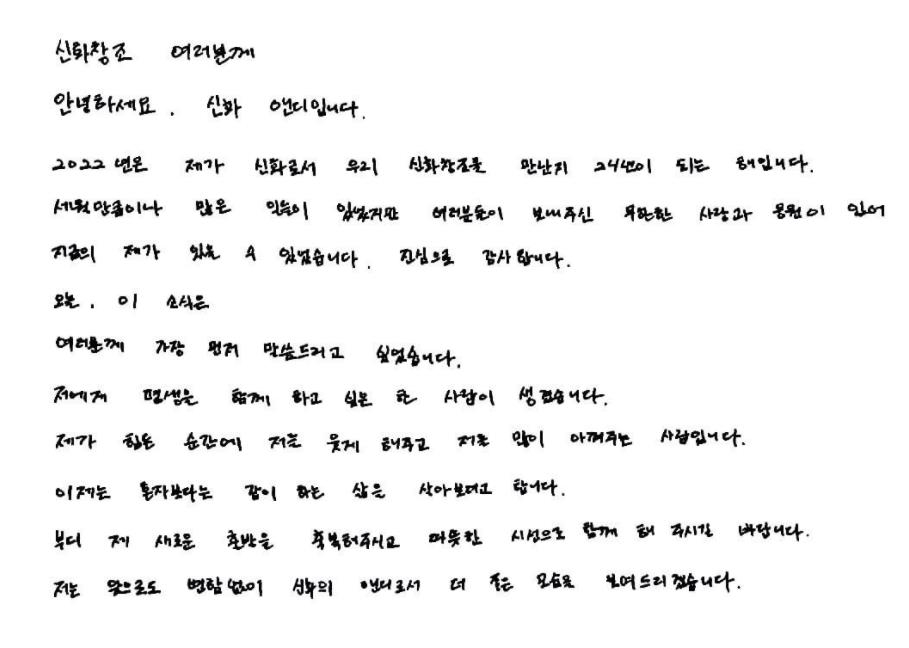 | ▲ 신화 앤디 자필편지 [앤디 사회관계망서비스(SNS) 캡처. 재판매 및 DB 금지] |