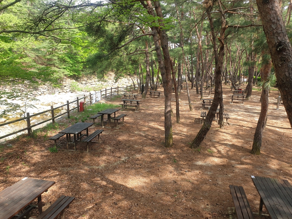 송계계곡 옆에 조성된 덕주피크닉존은 오전 9시부터 오후 5시까지 선착순으로 이용할 수 있다.